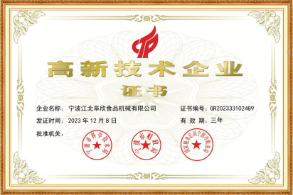 寧波江北阜欣食品機械有限公司成立于2014年,是一家專注于食品機械設備集研發、制造、銷售、服務為一體的高新技術企業。公司秉承“匠心、誠信、創新”的企業精神,持續貫徹“專業鑄就實力,創新促進發展,服務引領未來”的經營理念